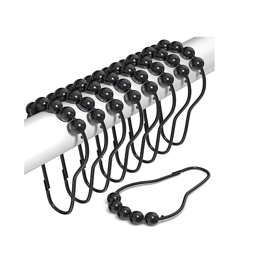 Black Plated Ball Bead Easy Glide Shower Curtain Hooks, 12pcs