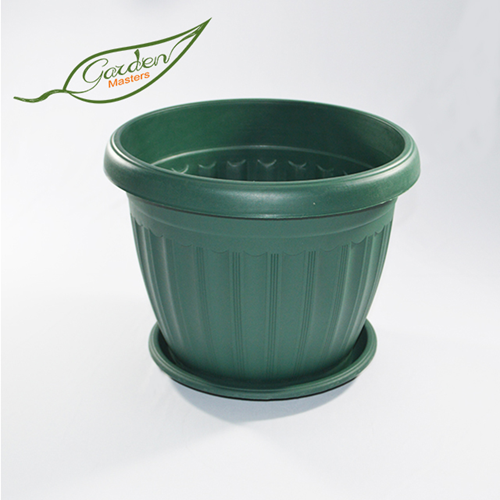 Garden Masters Plastic Flower Pot w/Saucer 29 x 22cm, Green