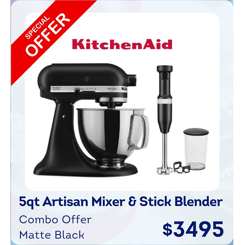 KitchenAid Artisan Series 5 Quart Tilt Head Stand Mixer & Variable Speed Corded Hand Blender Combo, Matte Black