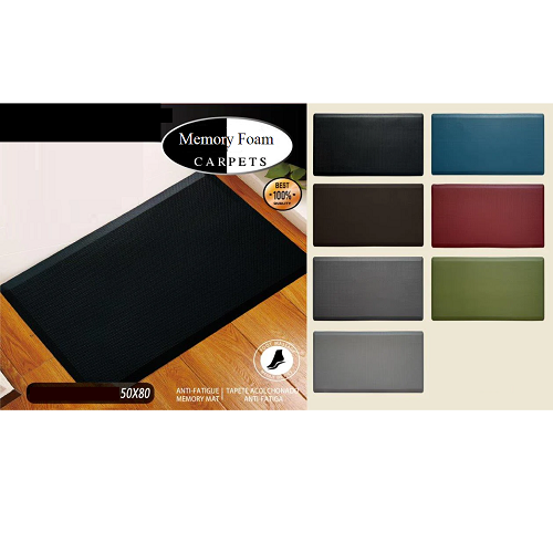 • The top of the anti-fatigue gel mat is designed with an attractive texture while the bottom is made of a non-slip material. The memory foam kitchen floor mat may be used on multiple surfaces (tile, wood, ceramic, marble, etc).