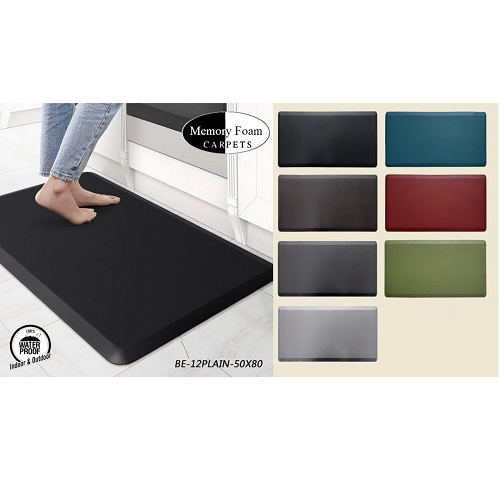 - The top of the anti-fatigue gel mat is designed with an attractive texture while the bottom is made of a non-slip material. The memory foam kitchen floor mat may be used on multiple surfaces (tile, wood, ceramic, marble, etc).