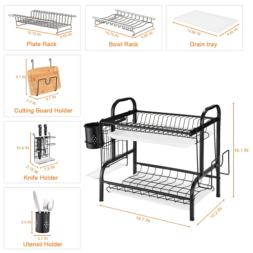 - 3 removable drainboards design and the utensil holder can better collect the water from the dishes and tableware to keep your counter dry and clean.