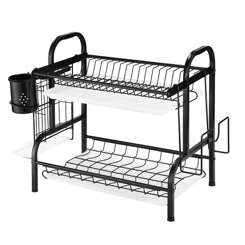 Metal 2-Tier Dish Drying Rack with Drainboard, Black