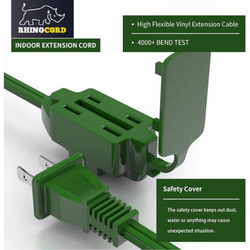 Rhinocord 9FT 3-Outlet Indoor Extension Cord, Green